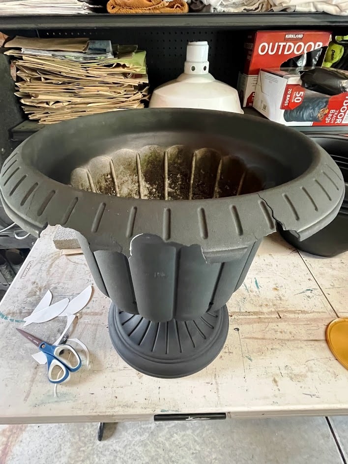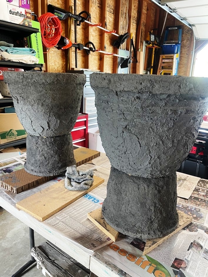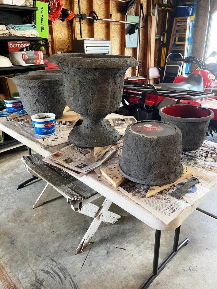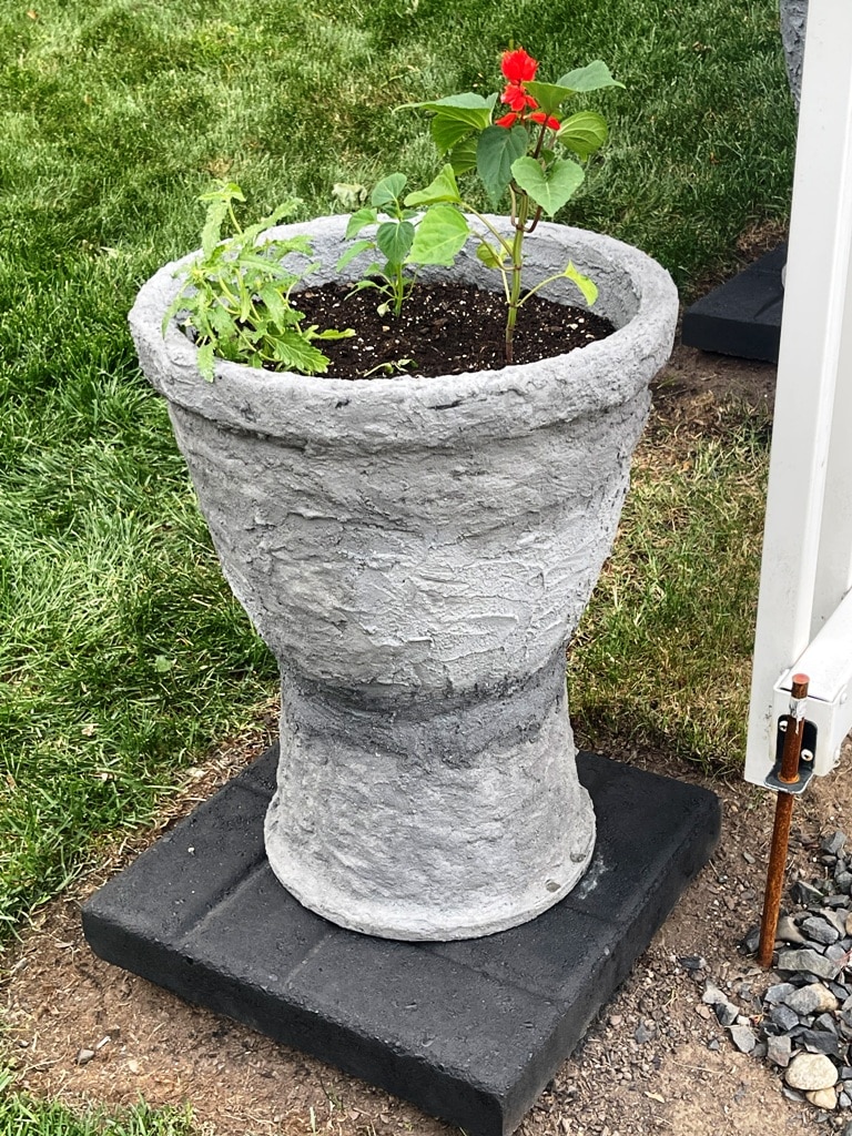 It’s Summer and I have been fixing so many items around the yard that are showing signs of weather damage and updating the looks while doing it. One of our wooden planters was in really sad shape – I’ll share how I fixed that one in another post. Even our plastic planters were showing wear and tear. What I’d really love is to replace all the planters with concrete ones. But since I don’t want to spend $ to buy new ones, I decided to fix the broken one and update all three to look a bit more like the concrete ones I love!