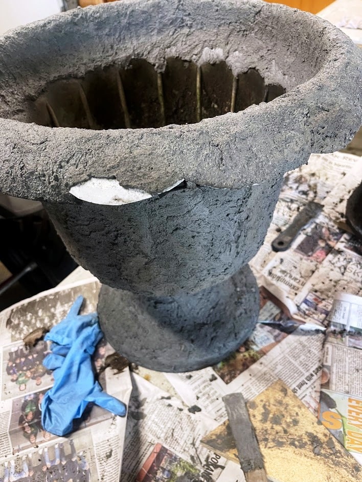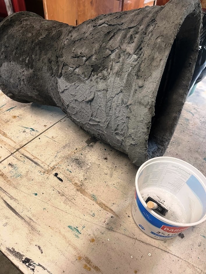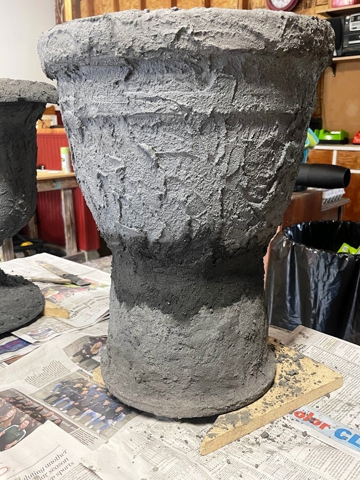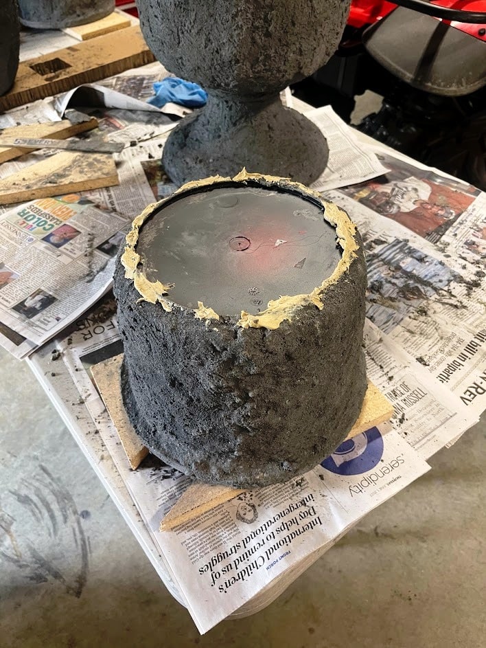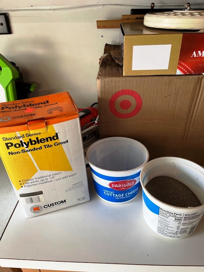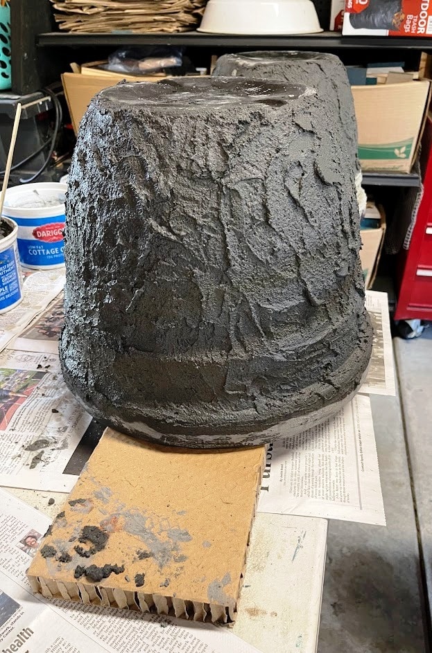 After the planter/buckets were attached, I added additional grout between the two to help them look like one piece. Since I had run out of the 2nd grout, I used another grey one that I had on hand. As you can see, this grout is even darker than the first two. At first, I thought I’d thin it down and paint it on all the other parts but then decided to just leave it as is.