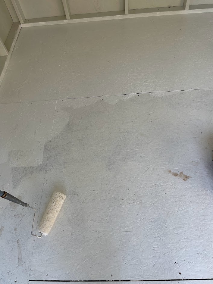 • Apply 2 coats of floor & porch paint to the floor using a rough surface roller